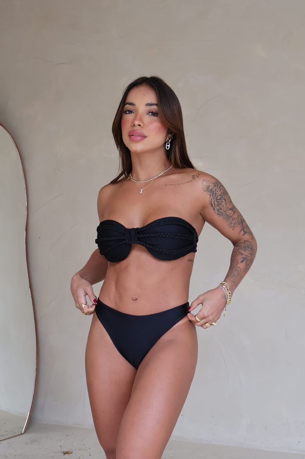 Top tamara que caia com bojo com detalhe trançado.