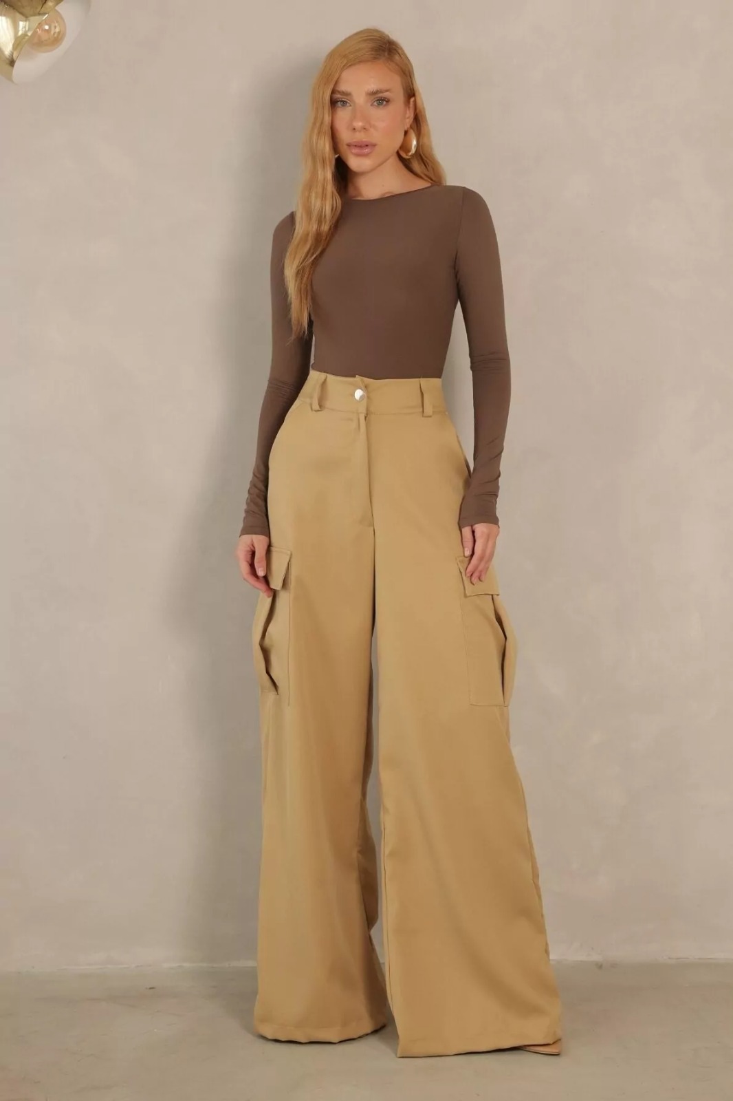 Calça cargo em Alfaiataria, com passantes, bolsos laterais e fechamento por zíper e botão.