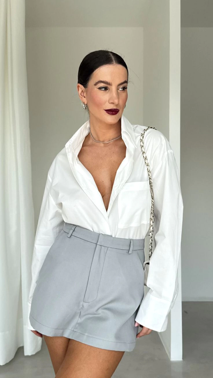Camisa em Viscolinho, manga longa e fechamento por botões.