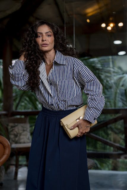 Camisa em Alfaiataria, manga longa, com bolso frontal e fechamento por botões.