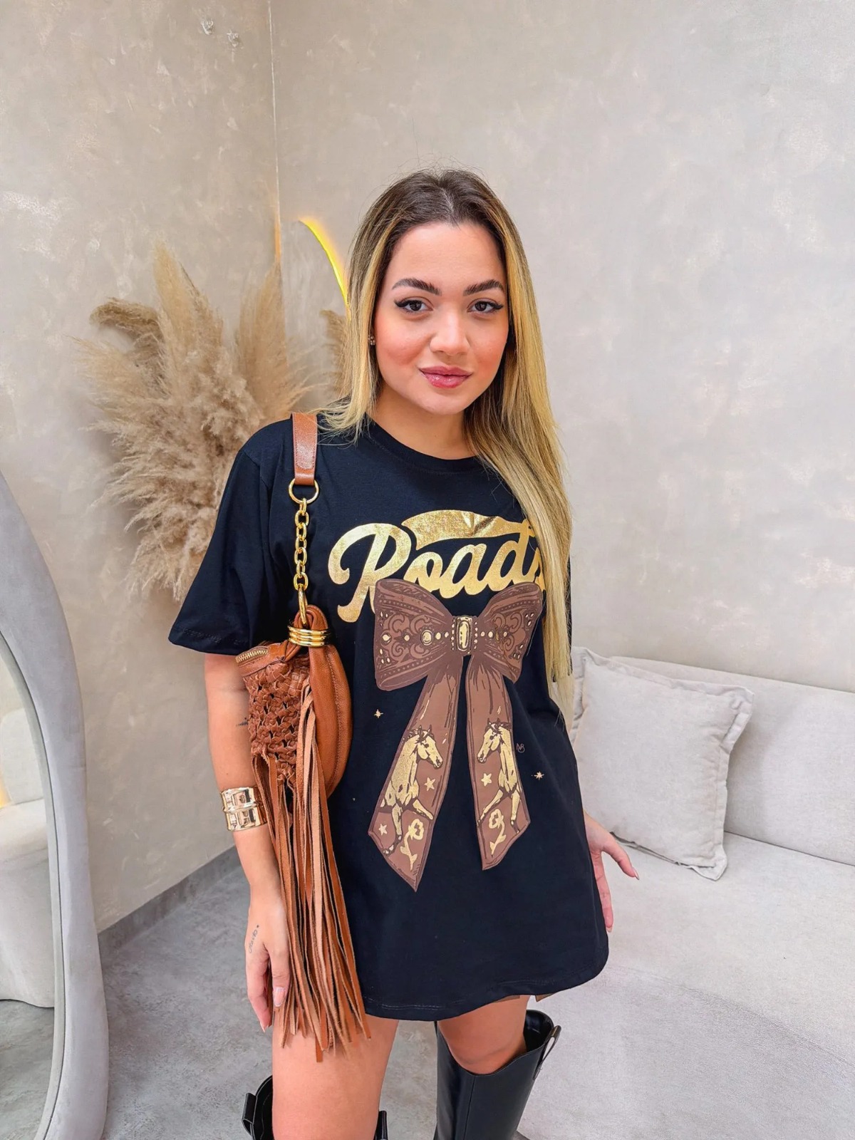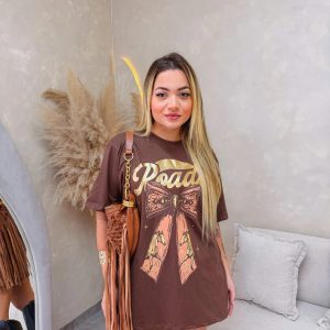 Camiseta over em algodão, manga curta com estampa.