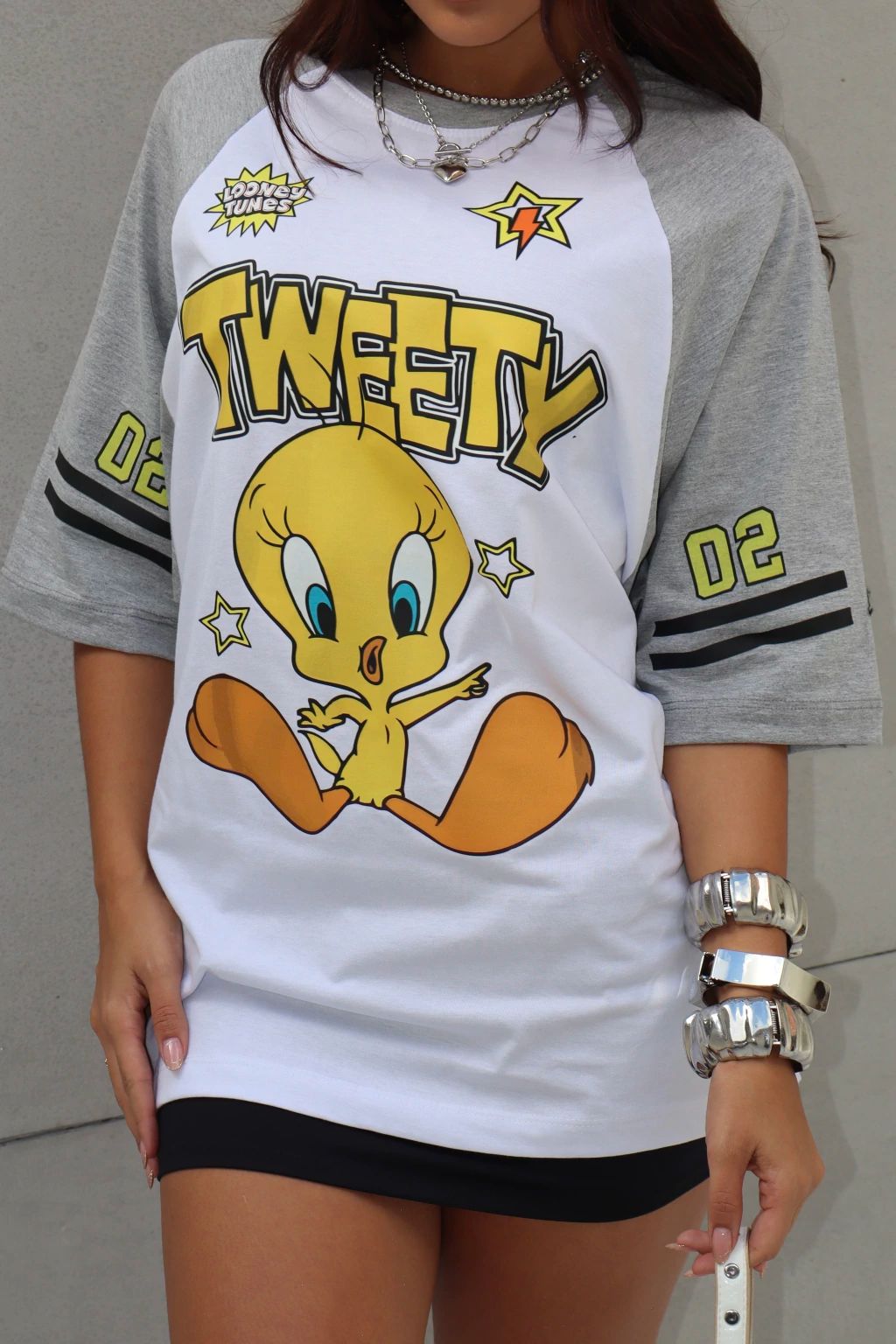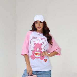 Camiseta em algodão com manga reglam, gola redonda e estampa frontal.