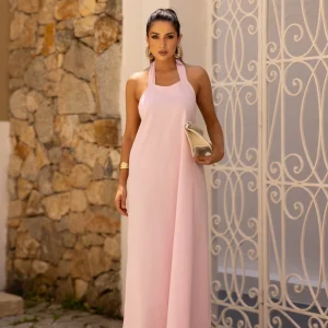 Chemise em Linho, manga longa com fechamento por botões e acompanha faixa do próprio tecido.