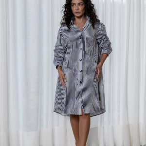Chemise em Linho, manga longa com fechamento por botões e acompanha faixa do próprio tecido.