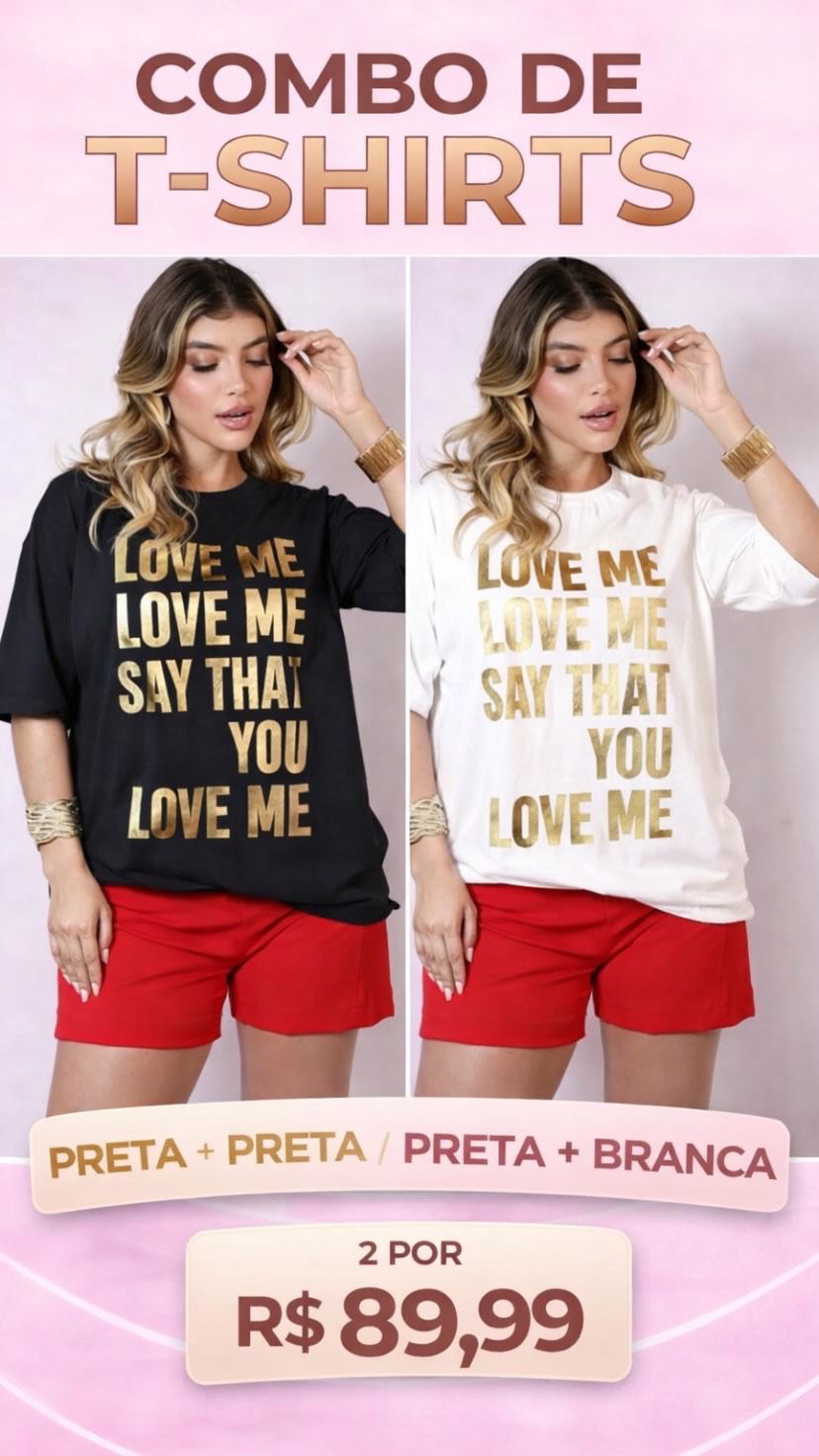 Combo Camisetão em Algodão, manga curta, gola redonda e estampa frontal.