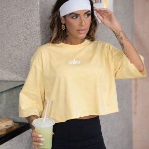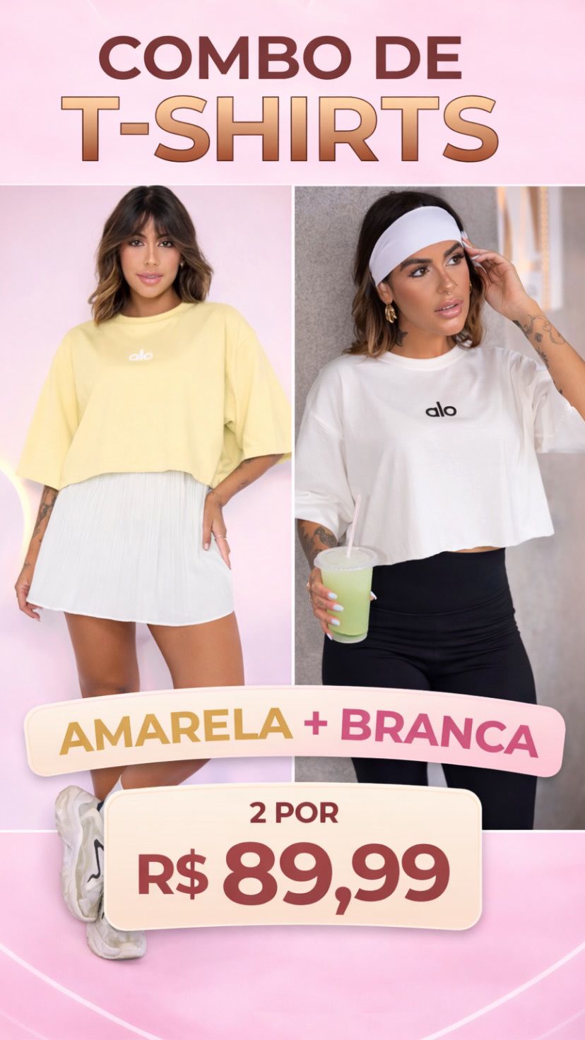 Combo T-shirt Cropped em Algodão, manga curta e estampa bordada.