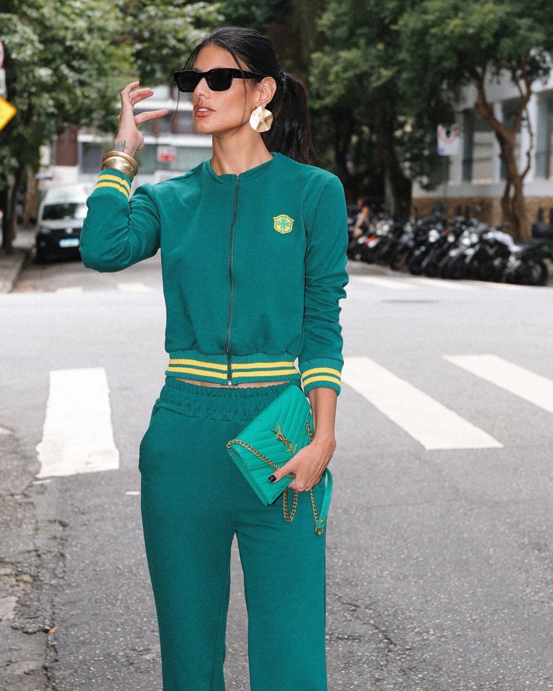 Jaqueta manga longa com punhos e barra em ribanna, fechamento por zíper e símbolo bordado