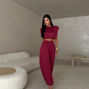 Blusa manga curta com franzido no ombro.