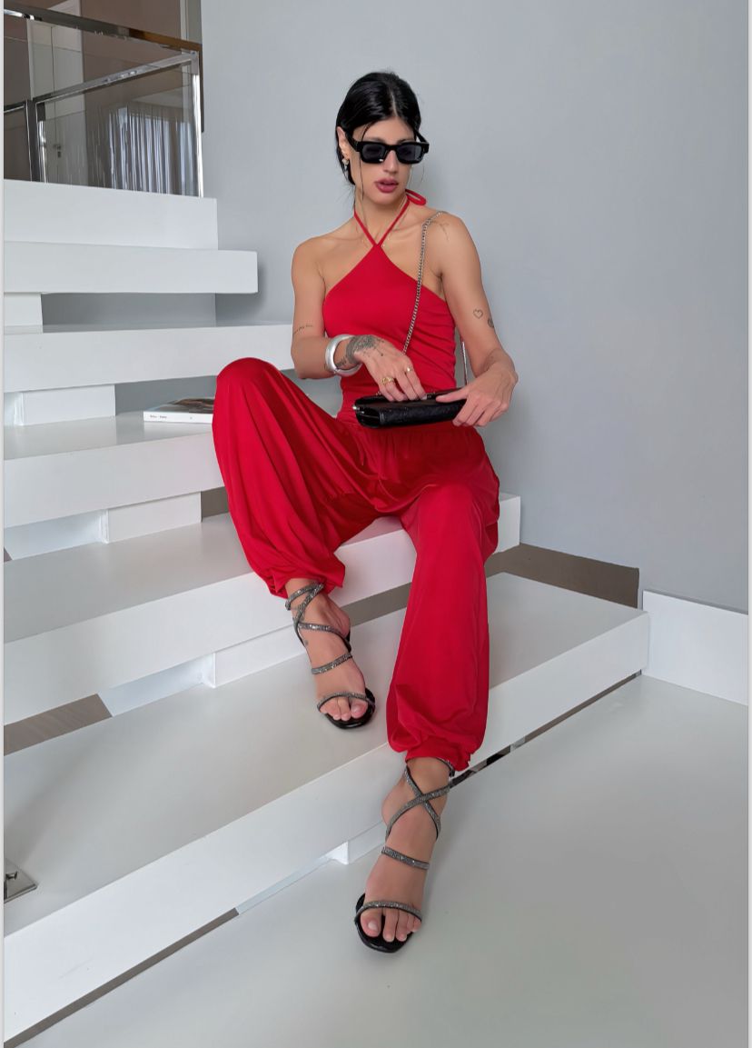 Blusa frente única com amarração no pescoço e elástico nas costas.