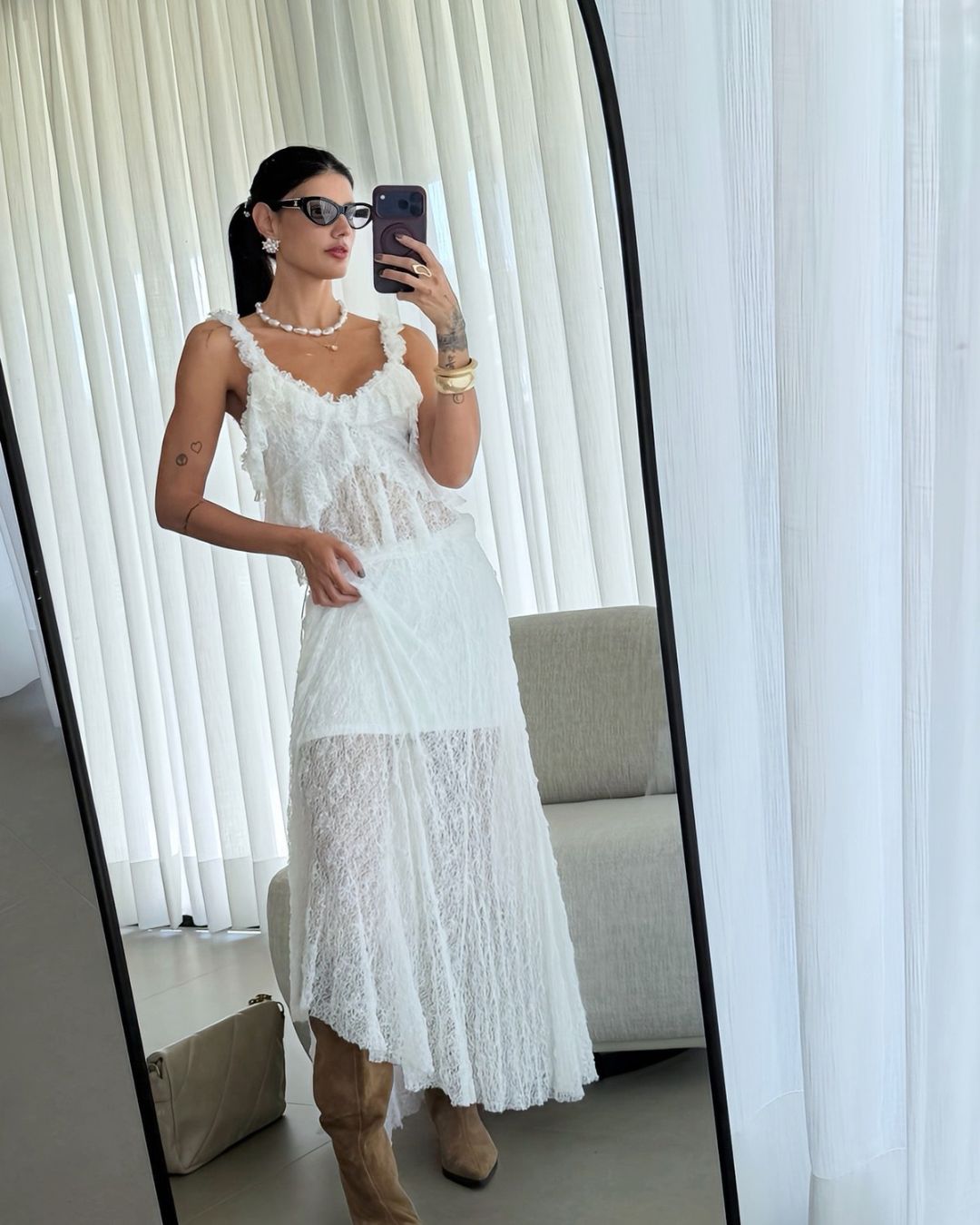Conjunto em renda forrado.