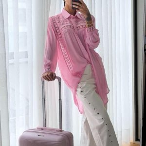 Conjunto em viscose com renda.