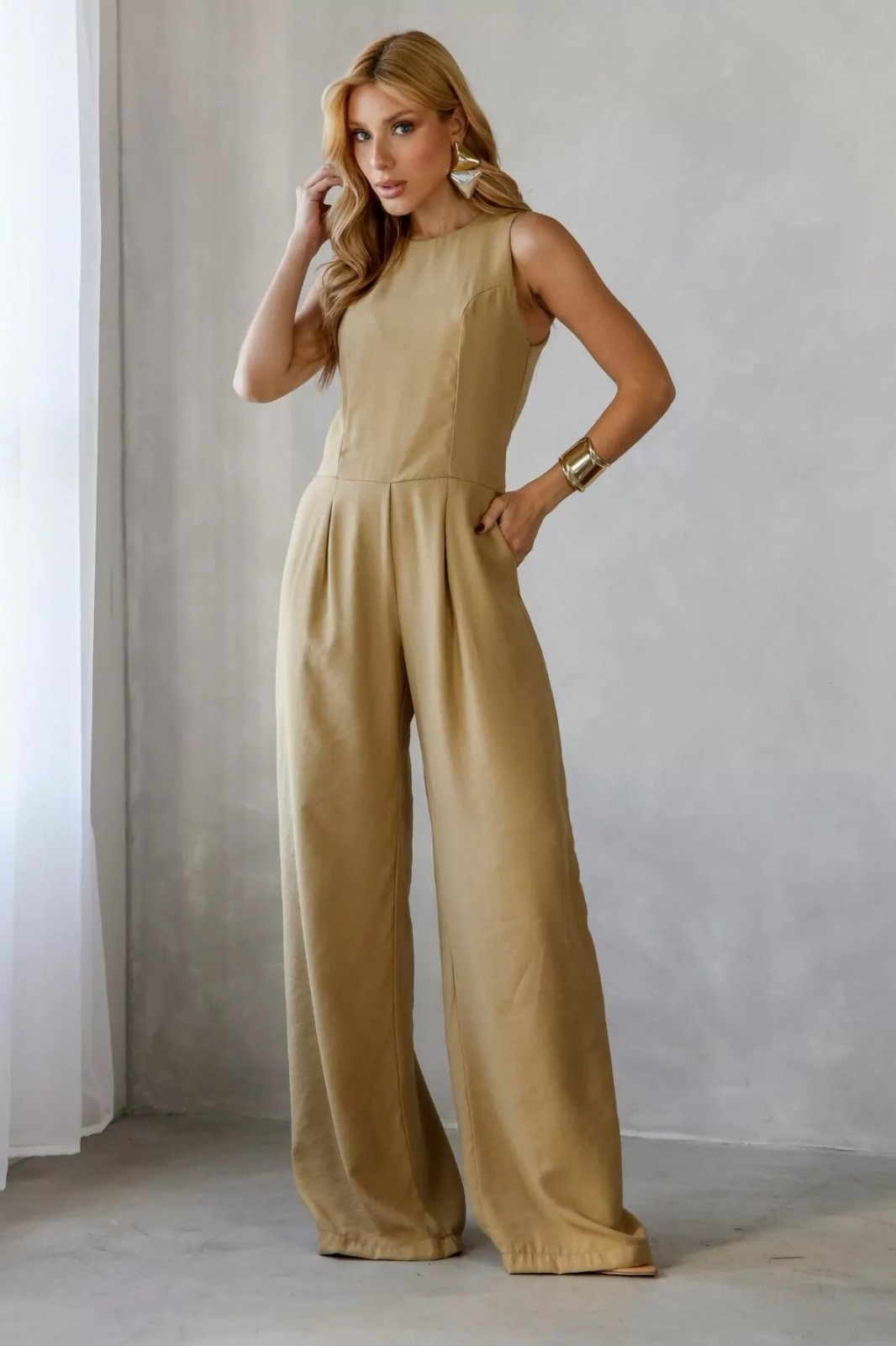 Macacão em Alfaiataria , modelo pantalona decote nadador, bolsos e zíper traseiro.
