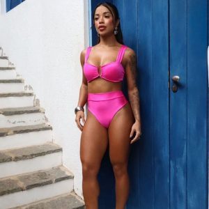 Maio atoalhado com forro de poliamida e alça ajustável.