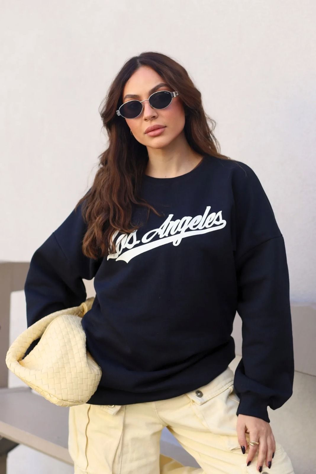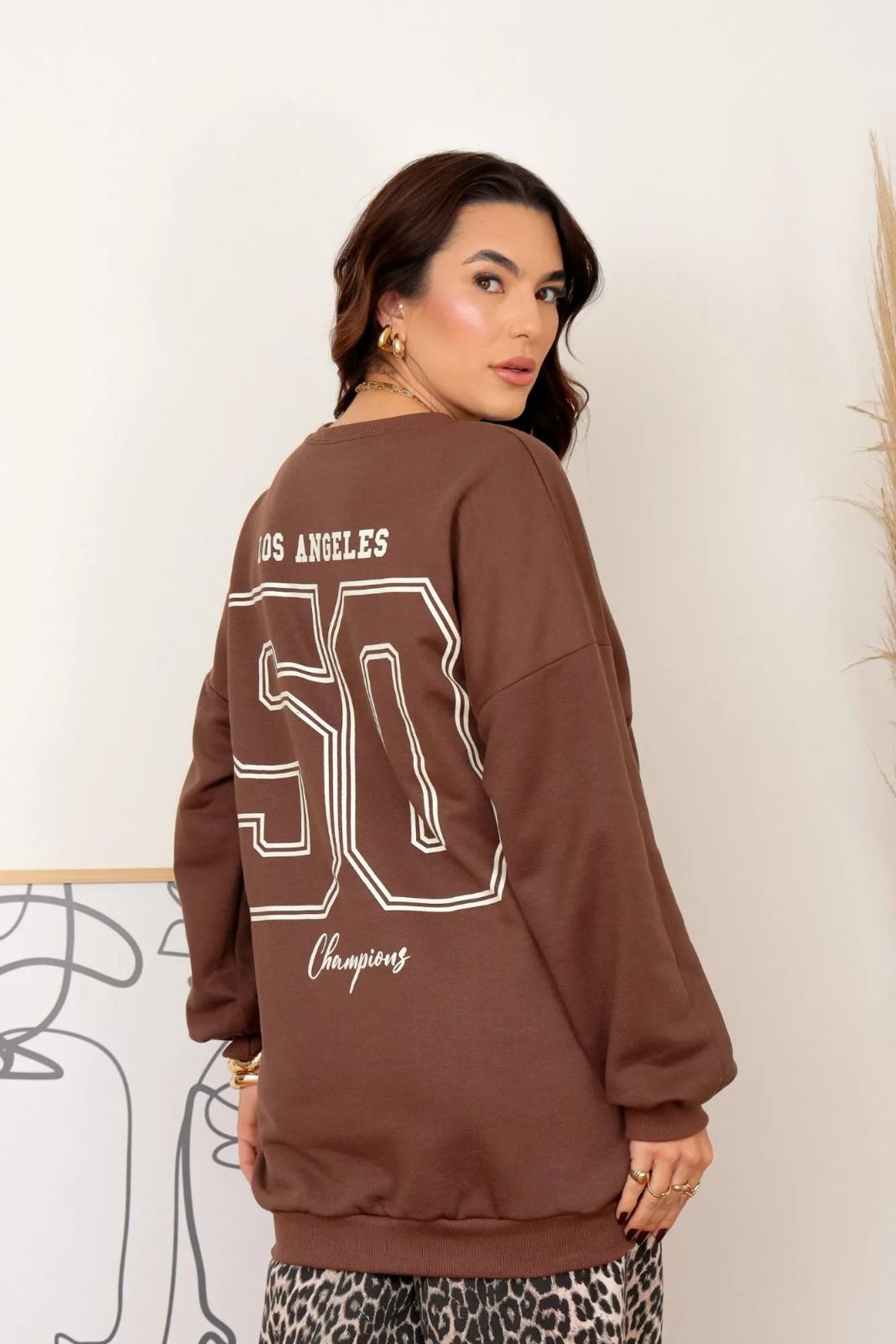 Maxi moletom Flanelado, manga longa com punho e estampa frontal.