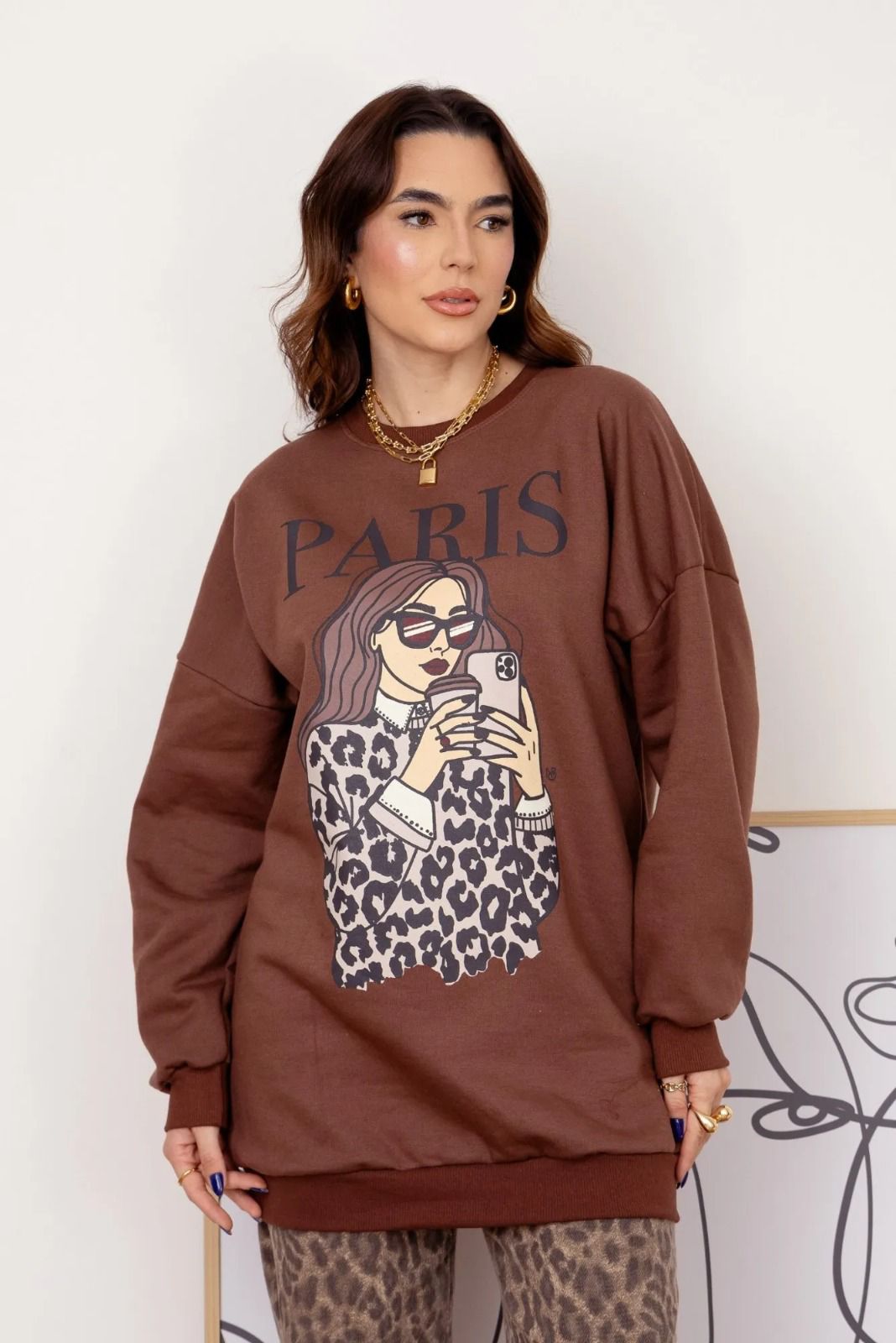 Maxi moletom Flanelado, manga longa com punho e estampa frontal.