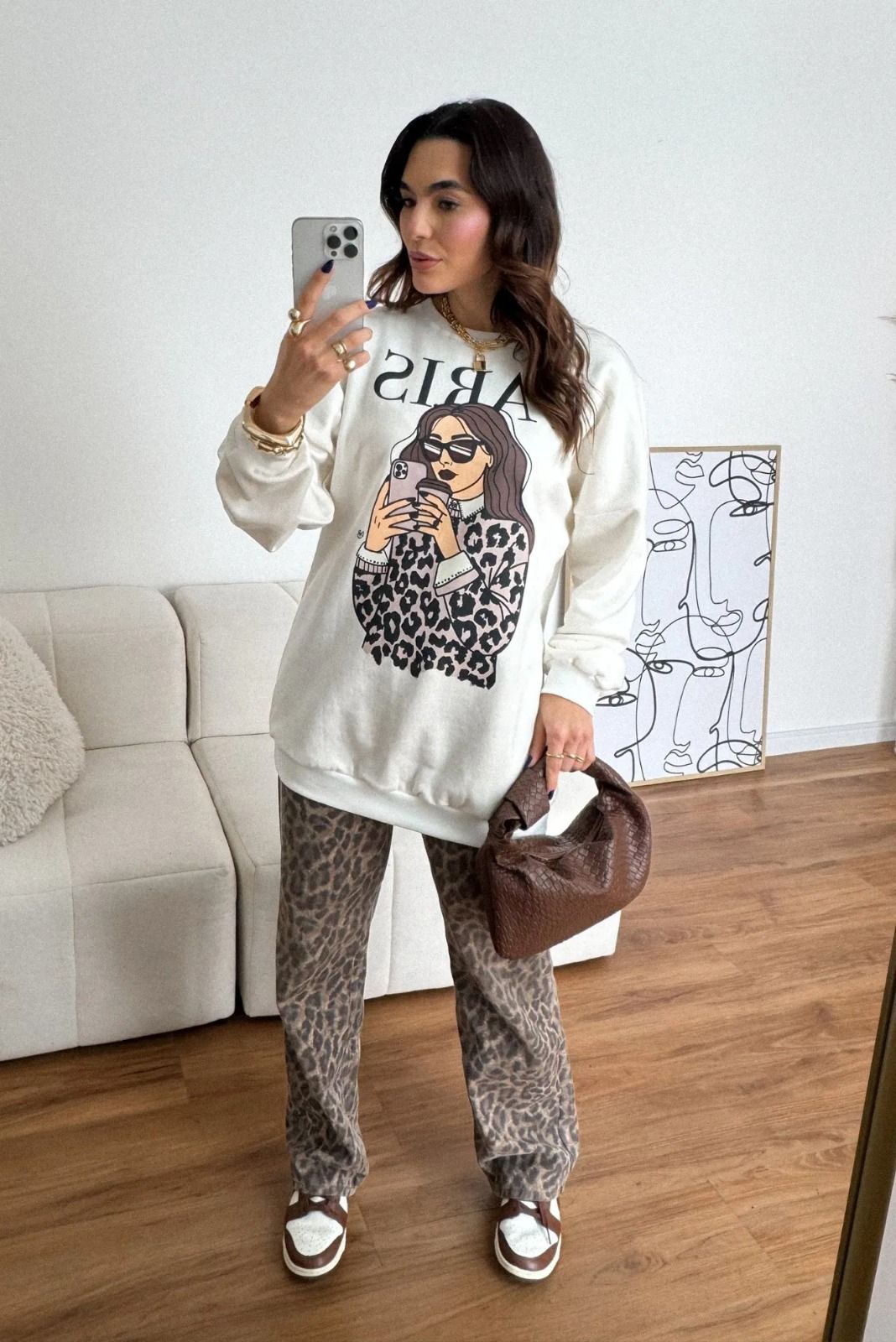 Maxi moletom Flanelado, manga longa com punho e estampa frontal.