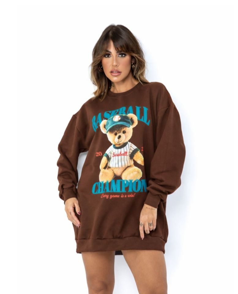 Maxi moletom Flanelado, manga longa com punho e estampa frontal.
