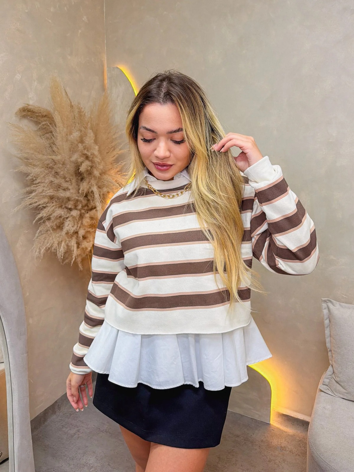 Moletom Flanelado, manga longa com punhos, estampa frontal e barra com corte a laser.