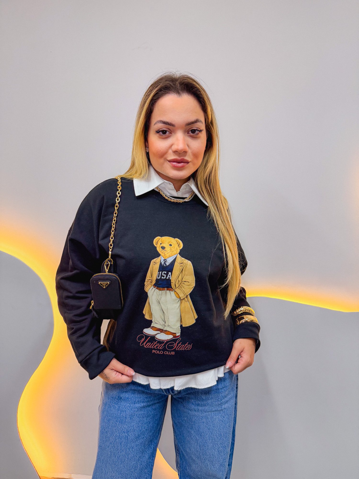 Moletom Flanelado, manga longa com punho e estampa frontal.