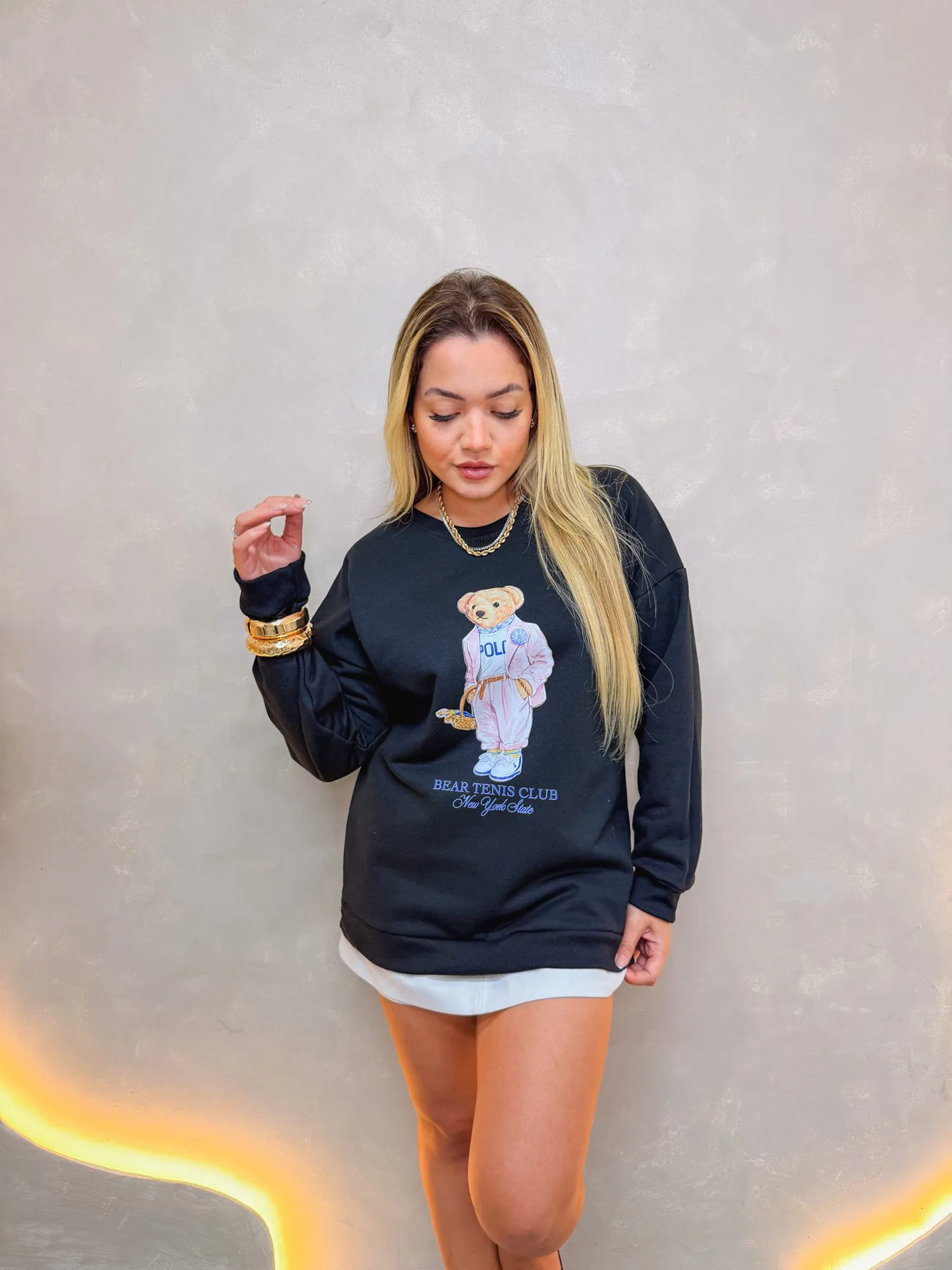 Moletom Flanelado, manga longa com punho e estampa frontal.
