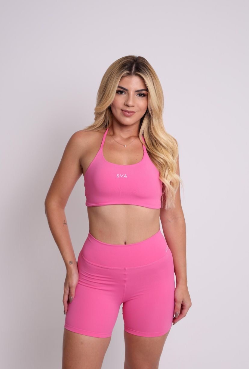 Short em poliamida com elastano, modelo biker, costura do cós nas costas em V.