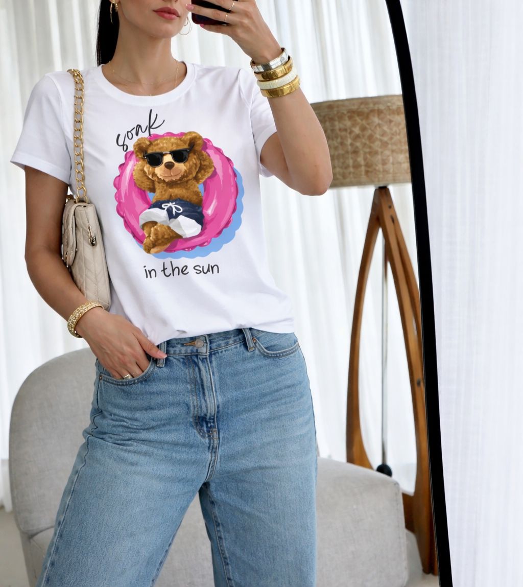 T-shirt em malha polielastano com estampa.