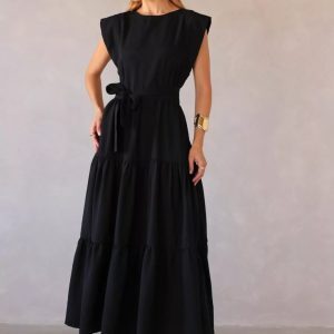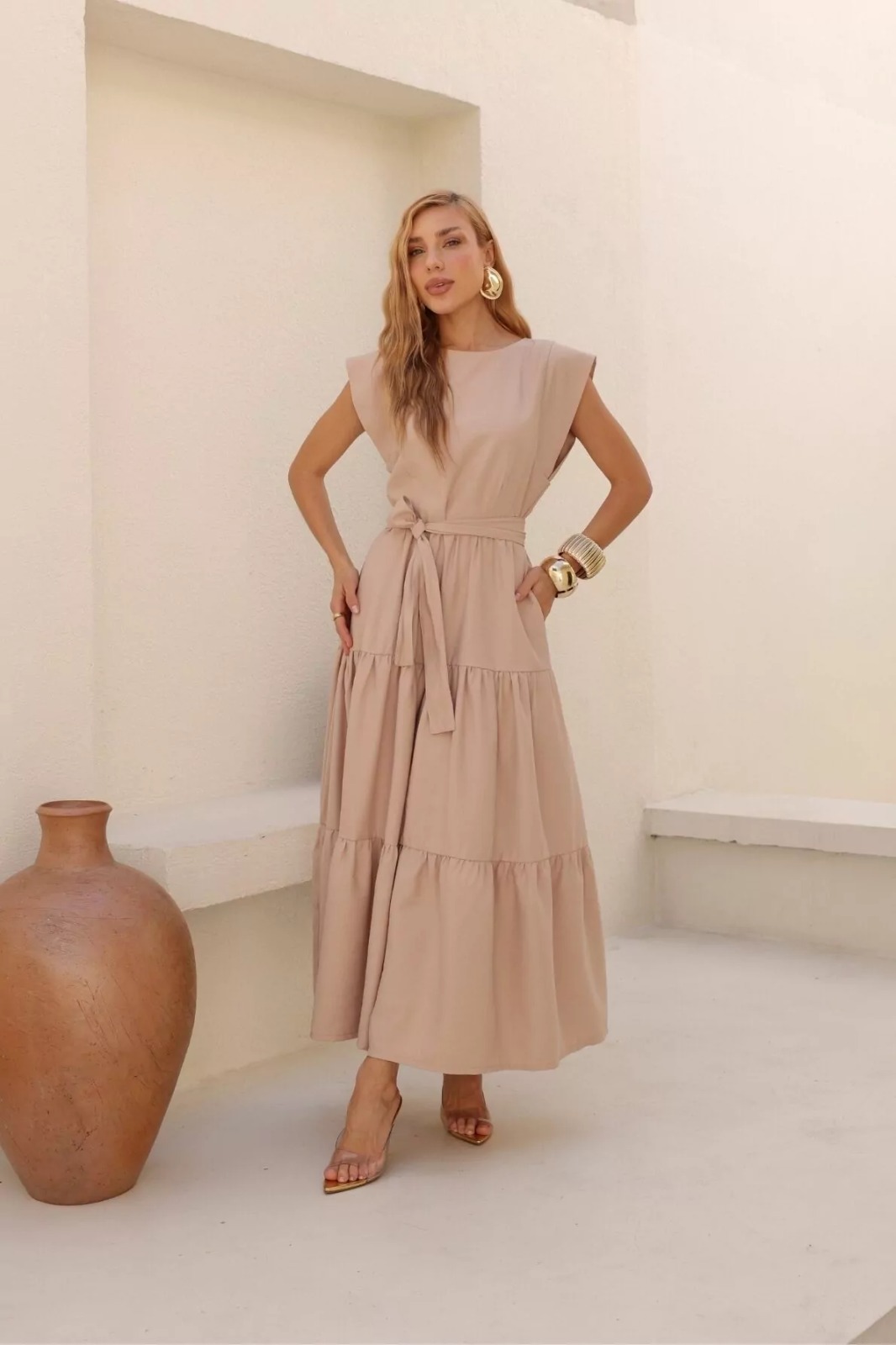 Vestido longuete em Alfaiataria Dominique, com manga japonesa, modelo três maria, cinto do próprio tecido para amarração e fechamento por zíper.
