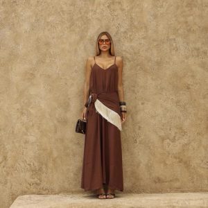 Vestido midi em Alfaiataria Marrant, com gola redonda, bolso frontal e fenda lateral.