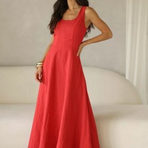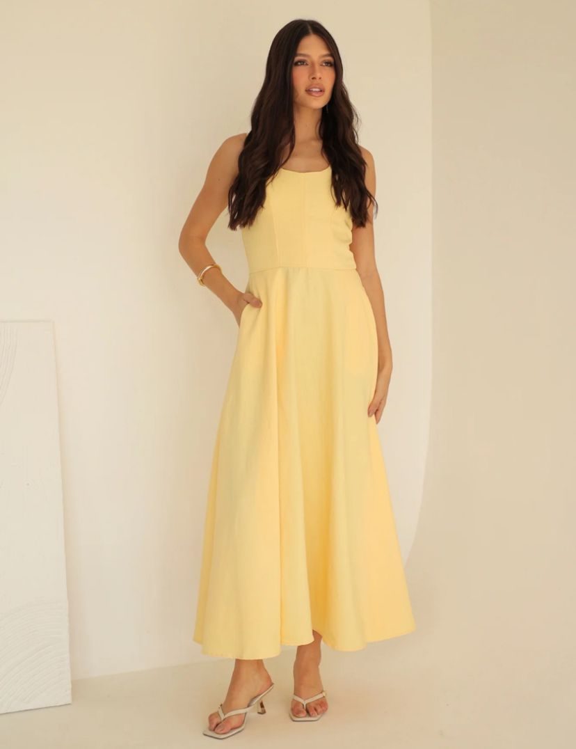 Vestido longo em Alfaiataria Dominique, com alca grossa e elástico nas costas.