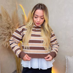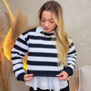 🤎🤍 As listras são uma das tendências desse outono e olha só esse moletom para usar sozinho ou com composição de look 🤎🤍